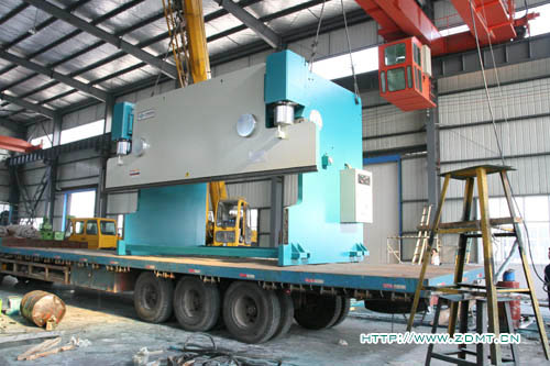 由于機(jī)器體積較大,高度超過3.5米,重量在50噸以上,所以采用了分體式運輸,工作臺與機(jī)器主體分離開來。這種大型機(jī)床由于其體積與重量的關(guān)系,并不是很常見,需求量相對來講少點,而對制造商的要求也相對比較高,其中無不體現(xiàn)中德產(chǎn)品在客戶心目中認(rèn)可度!