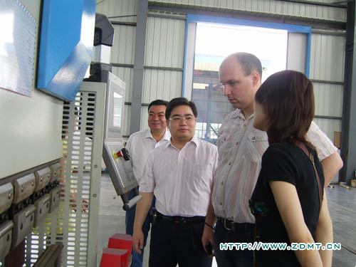 在中德公司領(lǐng)導(dǎo)的陪同下,尼爾森先生來到了我們的車間。尼爾森先生尤其關(guān)注數(shù)控類機(jī)床,對數(shù)控機(jī)床成品都一一細(xì)細(xì)查看。在正在生產(chǎn)中的大型數(shù)控雙機(jī)聯(lián)動(dòng)折彎機(jī)前,尼爾森表現(xiàn)出了極大的興趣,認(rèn)真的向負(fù)責(zé)人了解機(jī)器的情況。在大型裝配車間,尼爾森一行對中德車間的管理布局及環(huán)境表示了贊揚(yáng),雖然天氣很熱,干凈整潔的車間環(huán)境讓他們輕松地進(jìn)行參觀。另外,負(fù)責(zé)人還向他們介紹了產(chǎn)品設(shè)計(jì)方面的一些小細(xì)節(jié)如夾塊、T型槽等等,這些細(xì)節(jié)體現(xiàn)出了中德產(chǎn)品使客戶在使用產(chǎn)品過程中將會(huì)得到極大的便利。