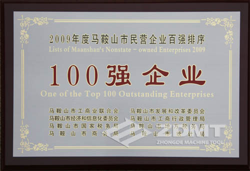 中德機(jī)床榮獲“2009年度馬鞍山民營企業(yè)雙百強(qiáng)”稱號