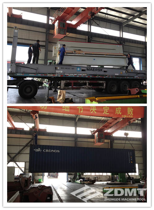 公稱壓力600噸、折彎能力長達7米的折彎機,以及剪切12mm、寬度6米的剪板機,其重量和體積遠遠超過了一般的海運貨柜規(guī)格。尤其是折彎機,重量超過了70噸,沒有過硬的技術(shù)和質(zhì)量,難以承接這樣大型設(shè)備的定做;加上機器出口,還要考慮如何拆裝運輸以及到港之后如何安裝調(diào)試等多方面的因素,更是對工廠大型設(shè)備出口經(jīng)驗?zāi)芰Φ目剂俊?/p>